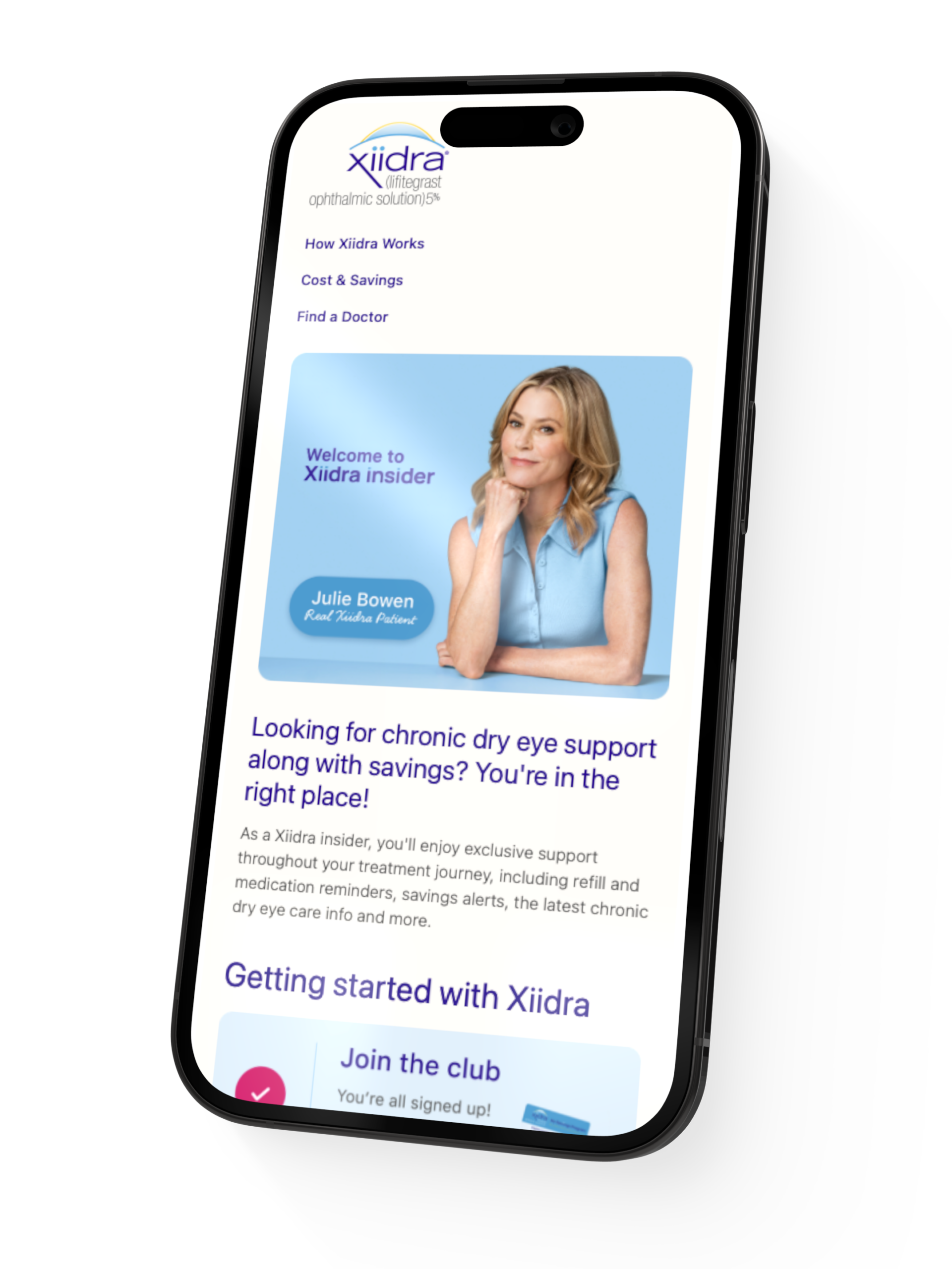 Working with the chronic dry eye therapy drug, Xiidra, we deployed uniquely customized onboarding, behavioral triggers, and adaptive content. This drove enormous growth enhancement just in year one: